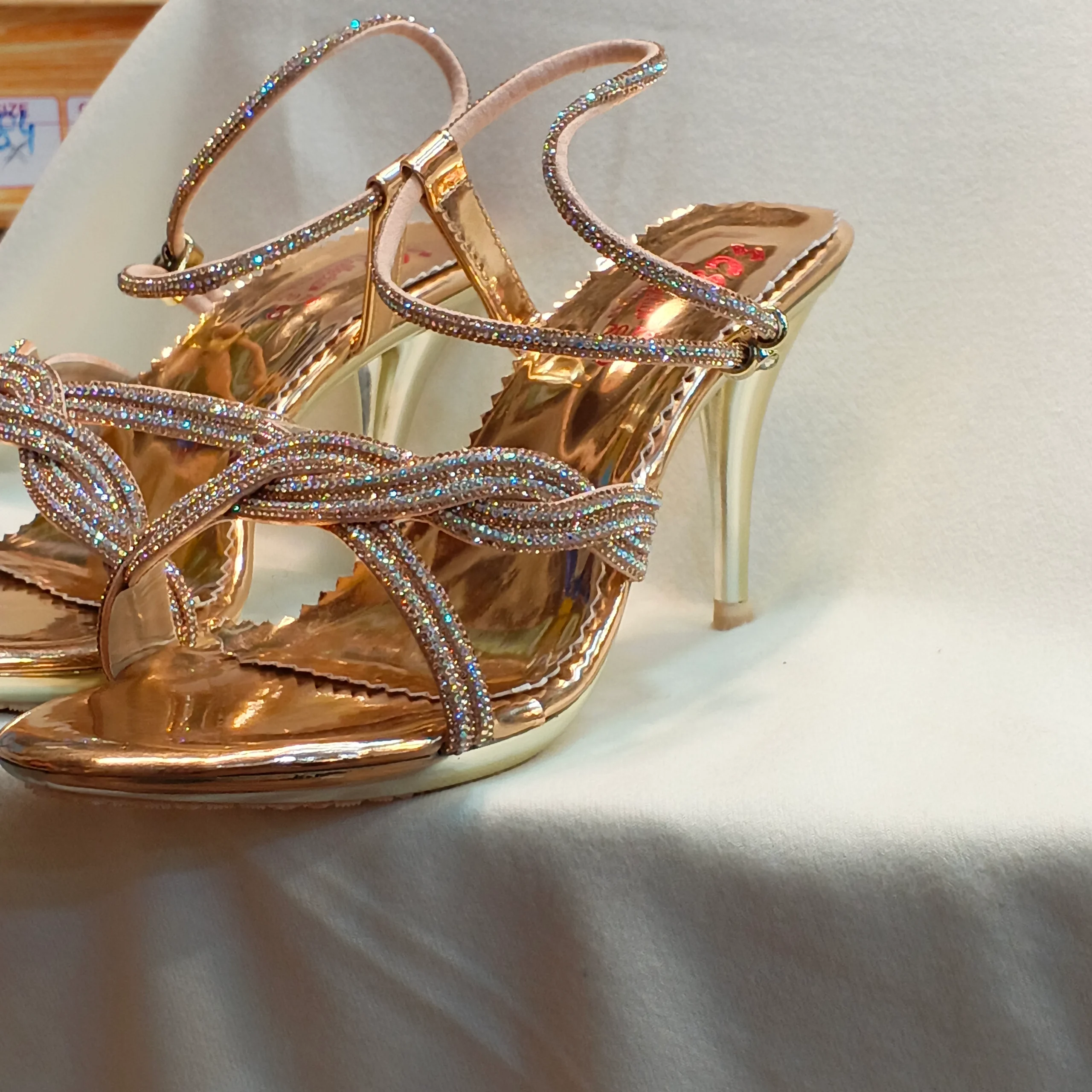 Step out in pure glamour with the Gala Knot Stiletto, the ultimate rhinestone heels for any upscale event. These luxurious metallic high heels feature shimmering, multi-strand crystal straps that knot elegantly across the foot, ensuring all eyes are on you. Available in high-shine rose gold or brilliant classic gold, these are the definitive wedding guest shoes and essential party footwear. The thin stiletto provides a dramatic lift, creating a sophisticated and head-turning look. Shop the top-selling embellished footwear of the season!